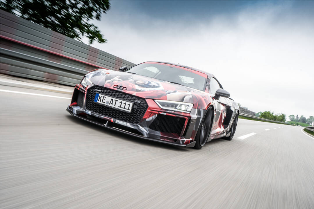 Art stems from ability: Timo Wuerz drew his first picture at the age of one and a half years, had his first vernissage at the age of 14 and released his first comic-album at the age of 20. The artsy rebel has not put the pencil away ever since. The today 45 year old has designed numerous record covers and comic-envelopes. But now the artist born in Swabia, who later moved to Hamburg, has created the ABT Art-Car in cooperation with the foliation-specialist SIGNal Design GmbH from Schwäbisch Hall. The prototype from Kempten is covered in a foil showing 20 women in sacral robes. On top of that, there is a second foil with red hashes. On to the rear the design merges into grey dots. That’s definitely not a subtle design. The artist with the red mohawk likes it striking and imposing. A perfect fit vor the 630 HP strong ABT R8.