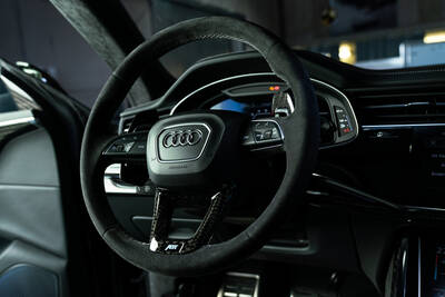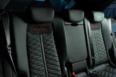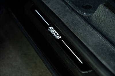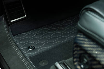 Im Innenraum der RSQ8 Signature Edition erwarten den stolzen Besitzer erlesene Materialien wie Alcantara und Akzente, die in puncto Individualität weit über den Serienstandard des RS-Modells und auch der R-Modelle von ABT Sportsline hinausgehen. Nur einer von vielen Aspekten ist hier die Fortsetzung der aufwändigen Rautensteppung der Sitze im Zuge der Türveredelung sowie der Fuß- und Kofferraummatten. Zudem wird das Oberflächenschema „Signature Carbon Bold“ erneut aufgegriffen, etwa an der Lenkradspange oder den Dekorblenden. Damit man sofort weiß, welch edles Gefährt man hier vor sich hat, präsentiert dieser RS Q8 stolz ein geprägtes ABT Logo in den Kopfstützen sowie den im Schulterbereich in die Sitze gestickten Schriftzug RSQ8 Signature Edition. Dieser findet sich zudem als Signet in der Mittelarmlehne, als Plakette an den Fußmatten oder in Gestalt der Türeinstiegsbeleuchtung.