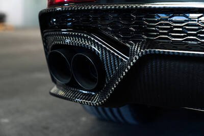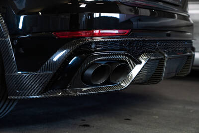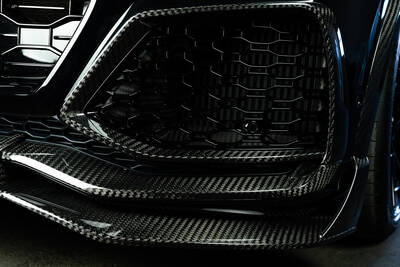 Wie bereits bei der Johann Abt Signature Edition gibt es wieder ein umfangreiches Aerodynamik-Kit mit einer besonderen und noch einmal ganz anderen Oberflächenstruktur. „Signature Carbon Bold“ lautet dieses Mal das Motto bei einer Vielzahl von Anbauteilen. Die markante einmalige Struktur schmückt beispielsweise die Frontlippe, die Frontblades, die Frontschürzeneinsätze inklusive Lufteinlassgitter und optimierter Luftführungen, den Frontgrillaufsatz, die Kotflügelverbreiterungen, die Spiegelkappenaufsätze, die Türaufsatzleisten, das Heckblendenset, die Heckschürzenaufsätze und den Heckspoiler. In „Carbon schwarz glanz“ präsentieren sich die vordere Radhausentlüftungen und die Heckspoilerlippe.